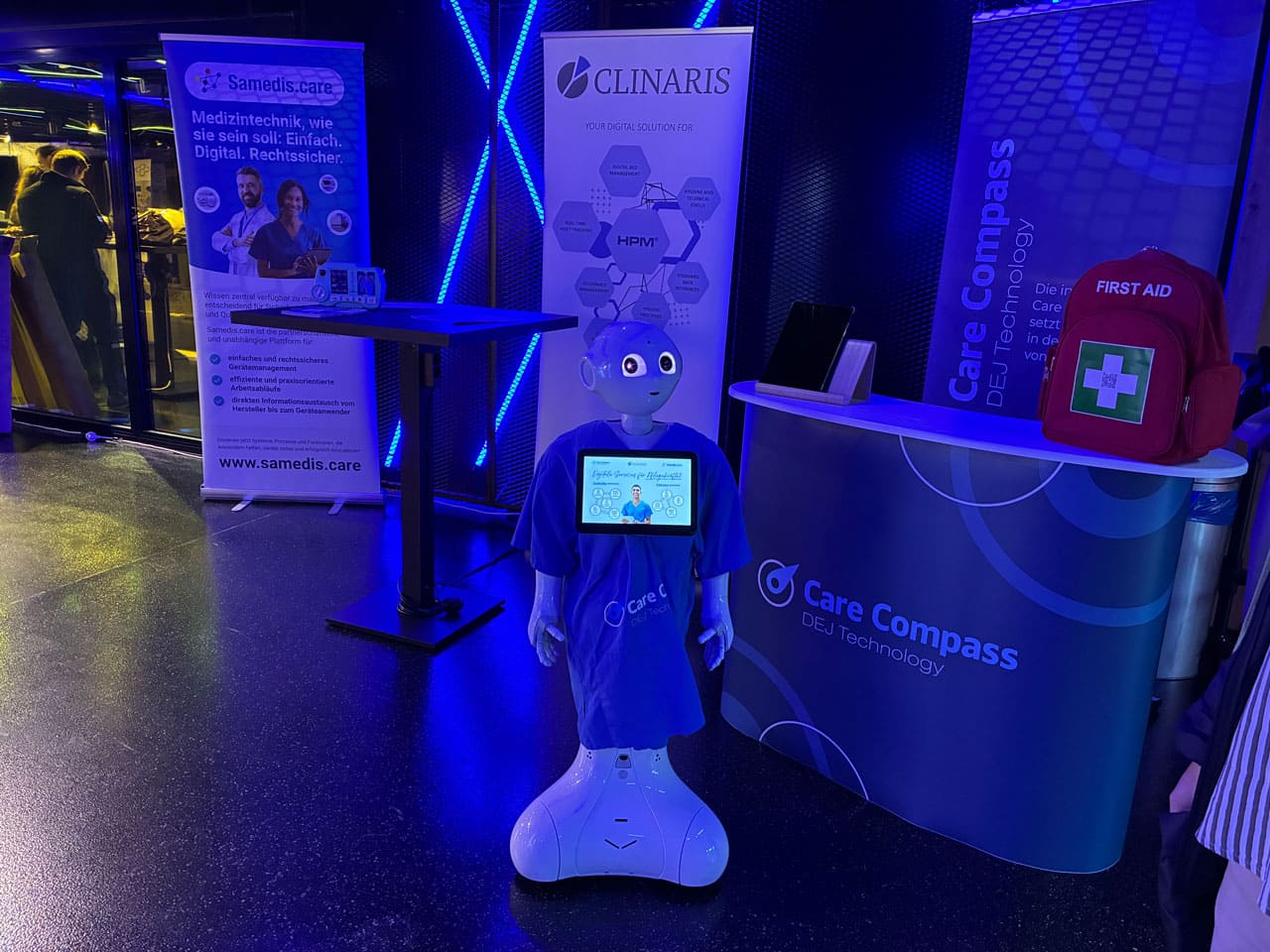 Der Vortragssaal war gut gefüllt: Im Schnitt über 80 Personen lauschten gespannt dem Vortrag, um von den Referenten Dr. Jonas Flint (CEO & Gründer Care Compass), Thomas Merz (CEO & Co-Gründer samedis.care GmbH) und Carina Hinz (Vertriebsleiterin & Prokuristin CLINARIS) mehr über die Best-of-Breed-Lösungen unserer Unternehmen zu erfahren.
